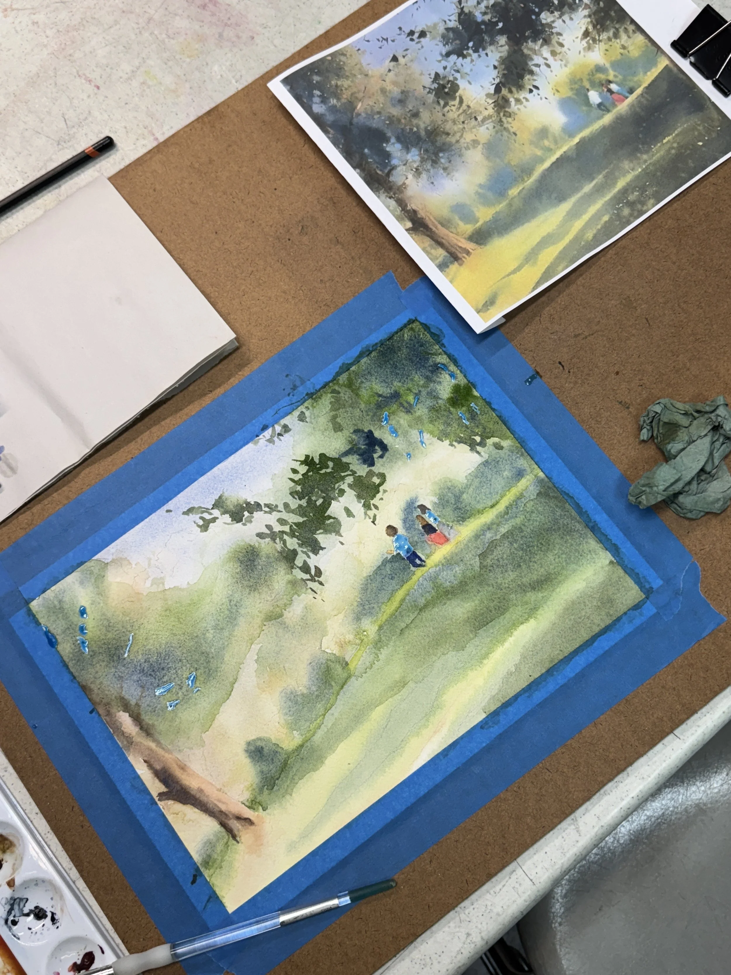 This 4-week course is designed to help students build foundation in watercolor landscape painting. The main emphasis will be on basic washes and essential watercolor techniques specifically for landscapes.